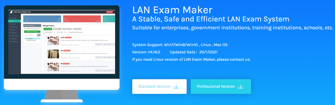 In fact, for enterprises, creating their own intranet exam system has become very simple—-our LAN Exam Maker. First, download an exam system for free on our official website and install it on your computer.